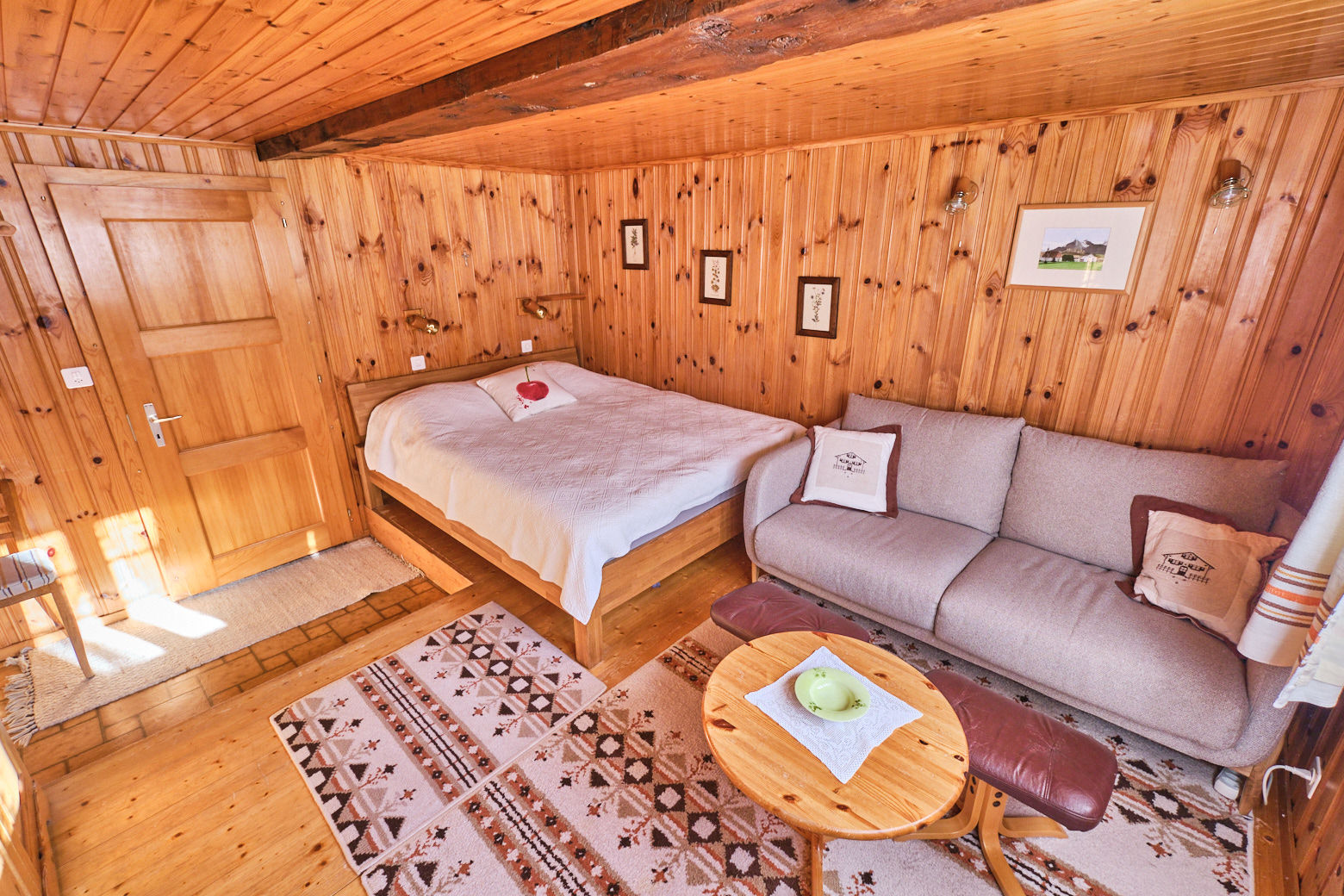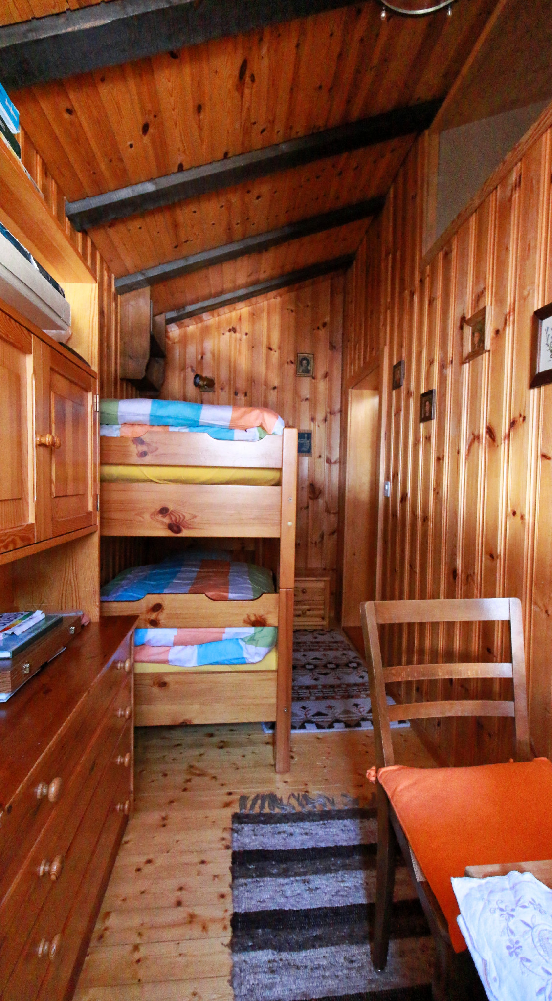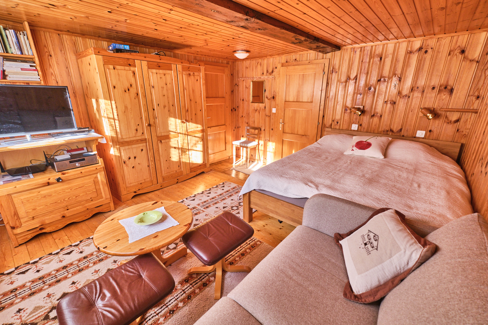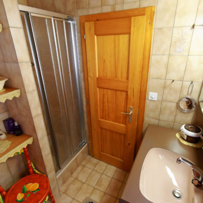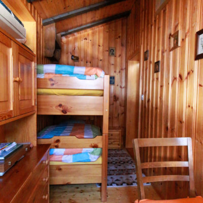 L’appartement de 55m2 comprend 1 cuisine avec coin à manger, 1 chambre avec un lit double (160 cm) et un coin salon/télévision, 1 chambre avec 2 lits superposés, 1 petite salle de bain (douche-WC).