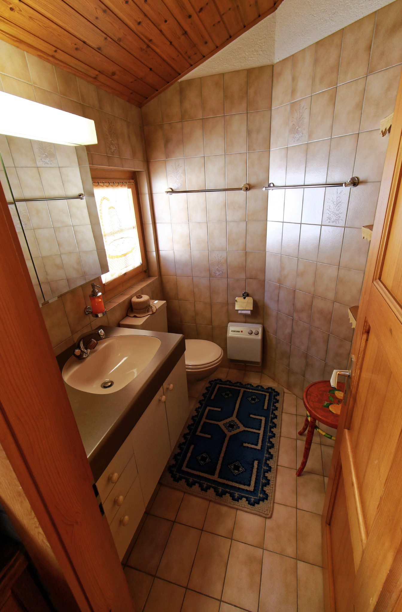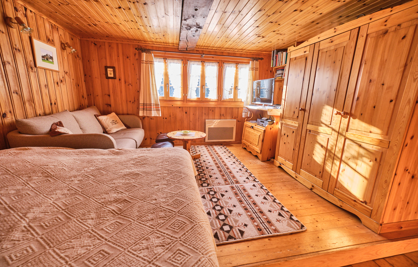 Die Wohnung von 55m2 besteht aus 1 Küche mit Essecke, 1 Schlafzimmer mit Doppelbett (160 cm) und Wohnecke mit Fernsehen, 1 Schlafzimmer mit Stockbette, 1 kleinen Bad (Dusche-WC).